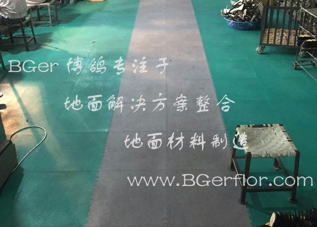 鞋廠 服裝廠 紡織廠 車間地板 地面處理材料應用F404_S型車間地板,快速鋪裝使用,直接簡易鋪裝,無需粘貼地面,潔凈、耐壓:承受車間設備、手推叉車和重型叉車搬運貨物行走,產品方案一站式解決鞋廠 服裝廠 紡織廠 車間地板使用需求,應用不同顏色,鋪裝人行道和叉車道。